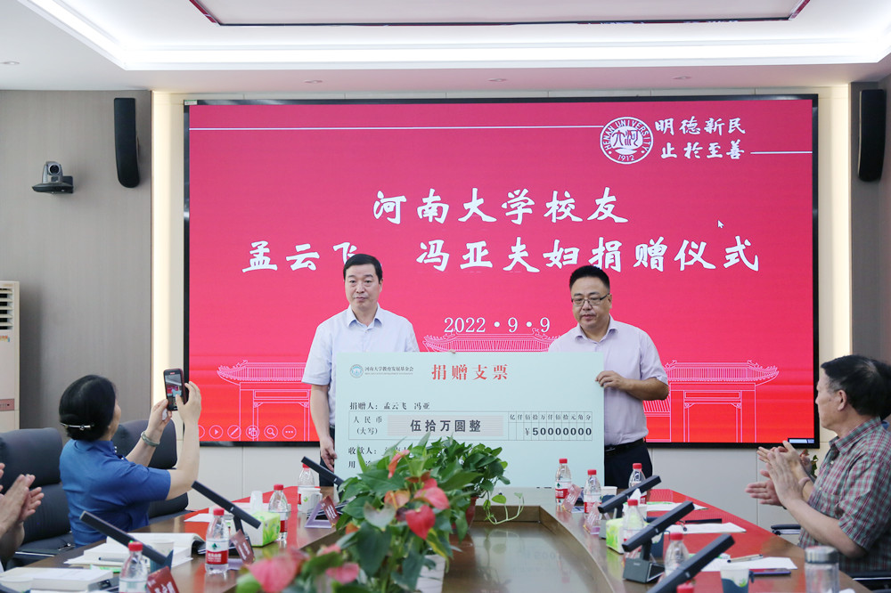 春風(fēng)育桃李,秋果謝恩情,母校如春風(fēng),師恩似海深。9月9日下午,河南大學(xué)校友孟云飛、馮亞夫婦捐贈儀式在文學(xué)院二樓會議室舉行。河南大學(xué)黨委書記盧克平、黨委副書記張寶明,河南大學(xué)文學(xué)院91級校友孟云飛、音樂系二系94級校友馮亞,相關(guān)職能部門、文學(xué)院91級校友代表、文學(xué)院領(lǐng)導(dǎo)班子成員、教師代表等出席儀式。捐贈儀式由文學(xué)院黨委書記楊萌芽主持。