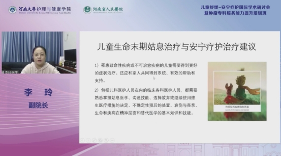 鄭州第九人民醫(yī)院副院長李玲作《安寧療護中的兒童服務(wù)實踐》報告