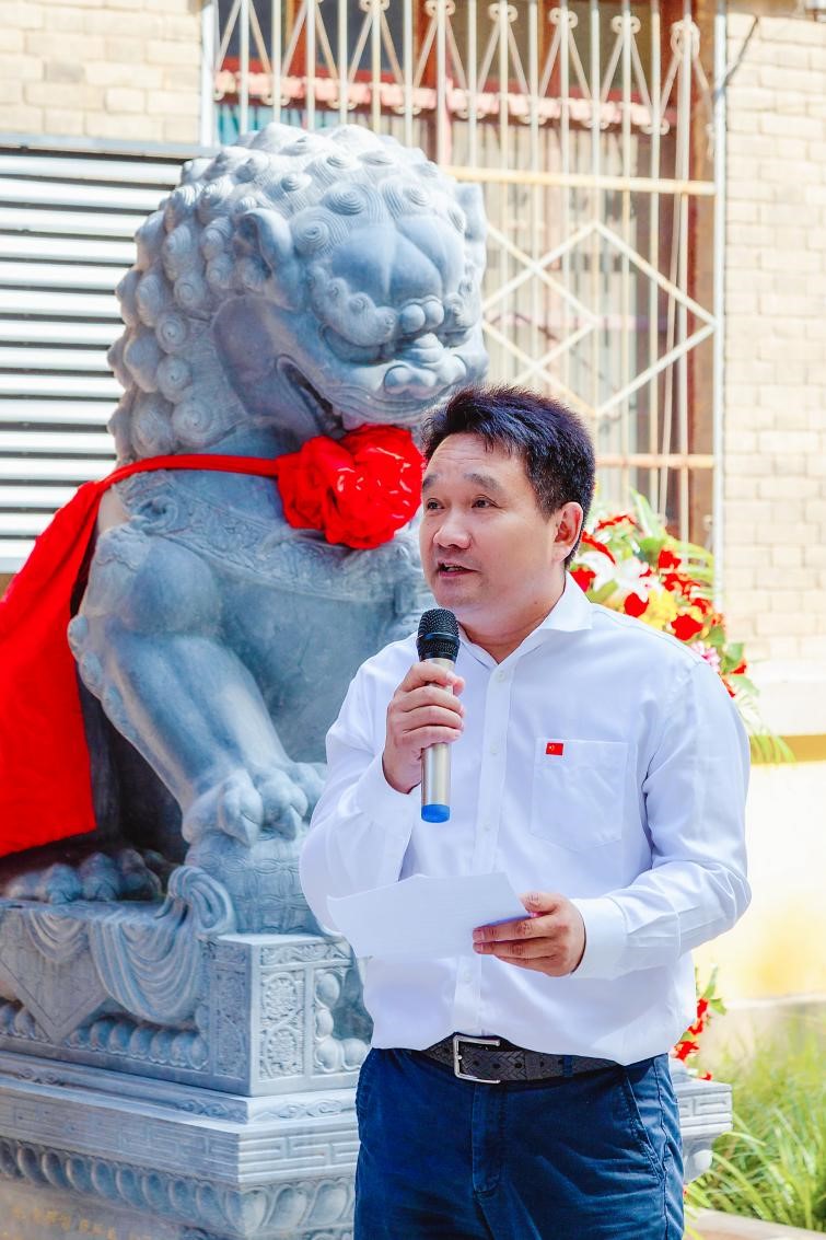 儀式上,譚貞、蔣威、張顏智、洪浩共同為石獅雕塑揭幕。