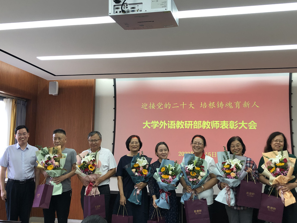 教育大計(jì),教師為本,為鼓勵(lì)教師不斷提升教學(xué)質(zhì)量、促進(jìn)教科研產(chǎn)出,大學(xué)外語(yǔ)教研部分別對(duì)獲得省部級(jí)教科研項(xiàng)目的教師、獲得省級(jí)以上教學(xué)獎(jiǎng)勵(lì)的教師和教學(xué)團(tuán)隊(duì)進(jìn)行表彰并頒發(fā)獎(jiǎng)品。