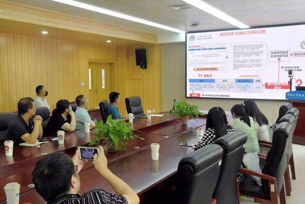 本期午茶會首次采取報告人云端模式進行。通過線上線下相結合方式,遠在上海的魏冬青教授與校內外60余人進行了充分交流。與談人郭向前從醫(yī)學生物信息學專業(yè)角度與魏冬青深入探討了藥物篩選及軟件應用的相關問題。生命科學學院魏建設,藥學院任暢、王懷友,數學與統(tǒng)計學院龐志峰,化學化工學院孫琳,天然藥物與免疫工程重點實驗趙媛,納米材料工程研究中心鄒雪艷等從不同研究領域和視角,與魏冬青教授進行了深入研討。報告深入淺出,交流輕松愉快,會場學術氛圍濃厚。