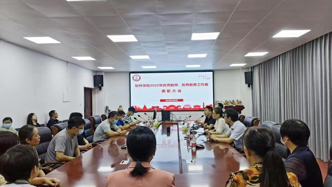 在第38個教師節(jié)到來之際,為強化榜樣的引領(lǐng)感召作用,充分展現(xiàn)廣大教師愛黨愛國愛校、立德樹人、自信自強的精神風貌,9月9日上午,軟件學院在三樓會議室召開2022年優(yōu)秀教師、優(yōu)秀教育工作者表彰大會。學院黨政領(lǐng)導(dǎo)班子全體成員、中層干部、受表彰人員以及教職工代表與會。