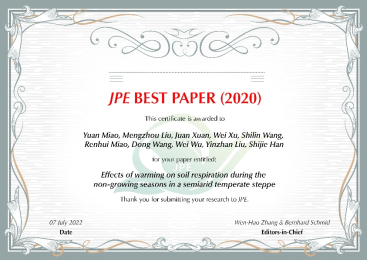 土壤碳排放:實(shí)驗(yàn)室成員依托非對(duì)稱(chēng)性增溫實(shí)驗(yàn)平臺(tái),研究了非生長(zhǎng)季增溫對(duì)溫帶半干旱草原土壤呼吸的影響,發(fā)現(xiàn):①土壤溫度、微生物生物量碳和氮的變化調(diào)控了土壤呼吸對(duì)模擬增溫的響應(yīng);②草地植物群落結(jié)構(gòu)和組成對(duì)生長(zhǎng)季后期干旱響應(yīng)大于前期干旱的響應(yīng)。研究成果分別發(fā)表在Journalof Plant Ecology和Journal of Vegetation Science上,苗原副教授和苗仁輝副教授分別為論文第一作者。其中,苗原副教授的論文獲得Journalof Plant Ecology2022年度最佳論文獎(jiǎng)。