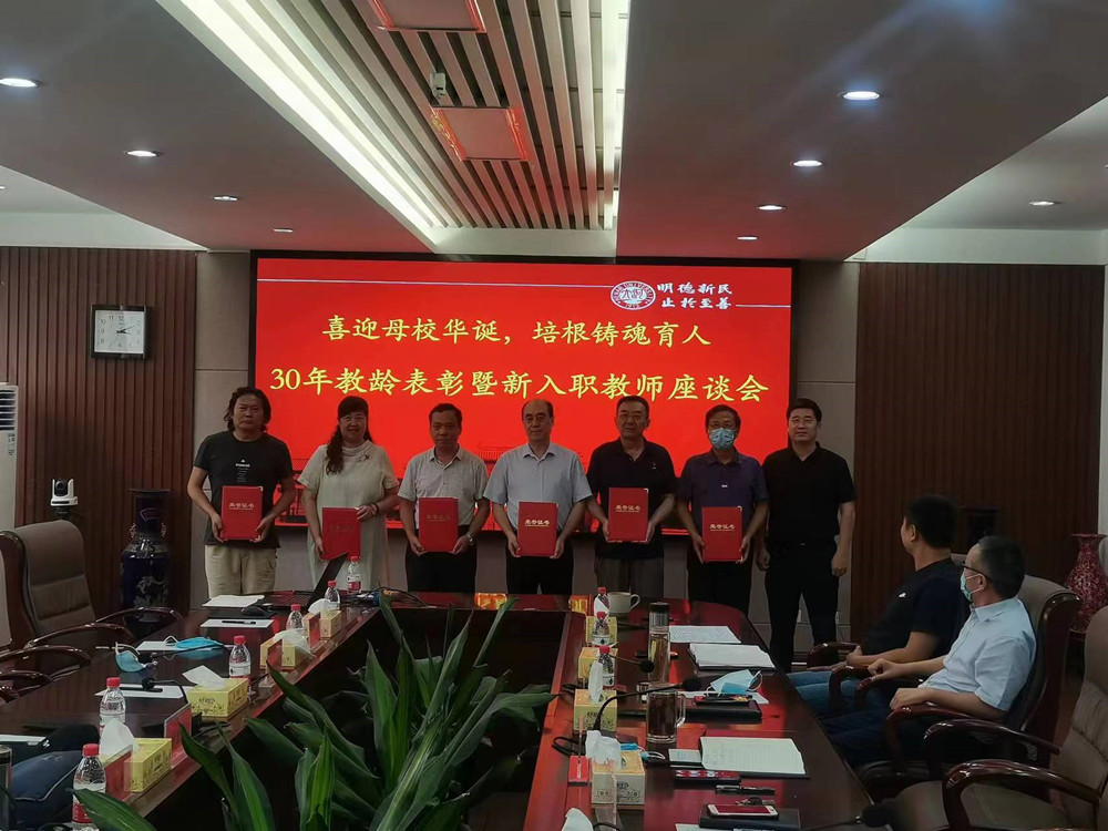 喜迎母校華誕,培根鑄魂育人。9月8日下午,在第38個(gè)教師節(jié)來臨之際,土木建筑學(xué)院舉辦30年教齡表彰暨新入職教師座談會(huì),學(xué)院領(lǐng)導(dǎo)班子、受表彰教師和2020年以來新入職教師參與了本次活動(dòng)。座談會(huì)由學(xué)院黨委副書記趙艷忠主持。